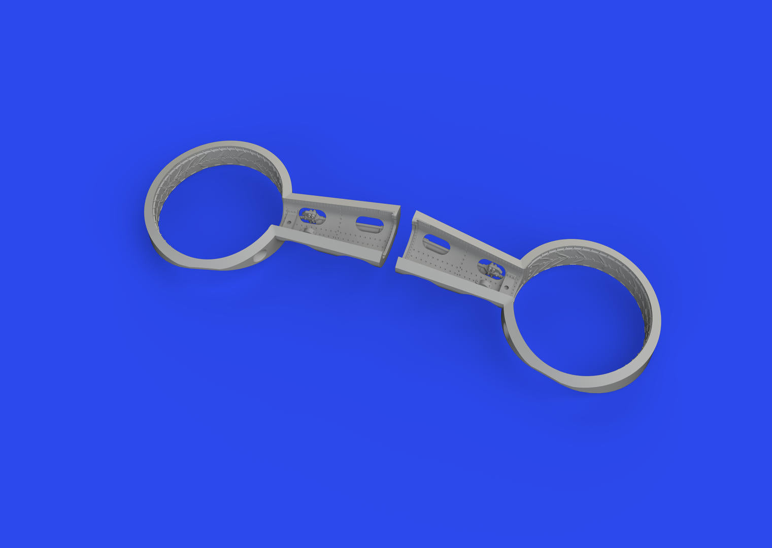 Brassin set rounded wheel bays for Bf 109F in 1/48 scale.